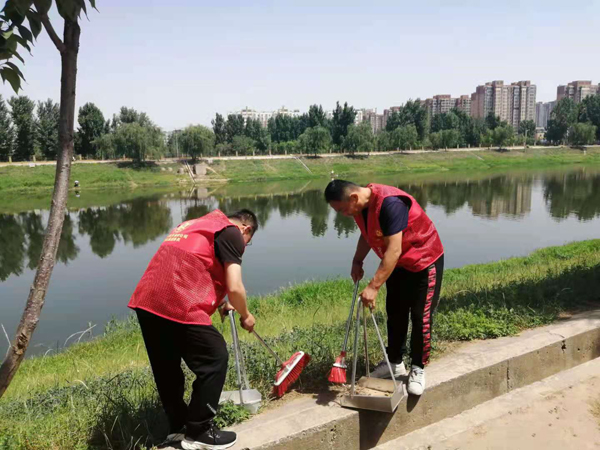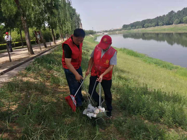 活動(dòng)中,大家不怕苦不怕累,拿起鉗子、掃把和垃圾袋,頂著大太陽(yáng),沿著安陽(yáng)河畔清理垃圾。同志們所到之處,不管是隱藏在草叢中的塑料袋、空瓶子,還是白色垃圾都被一一撿起,裝到垃圾袋里帶走。
