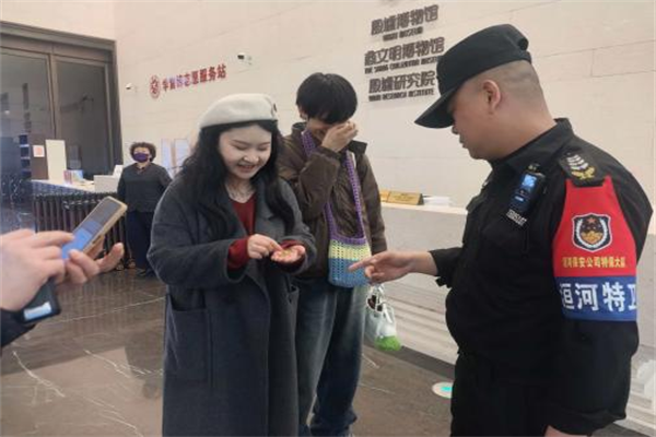 2026年農(nóng)歷新春佳節(jié)期間,中國文字博物館、中國文字博物館續(xù)建、殷墟博物館三大場館累計接待游客30萬人次。面對假期大客流、高密度、高關(guān)注度的嚴(yán)峻挑戰(zhàn),特保大隊嚴(yán)格貫徹落實各場館工作部署,始終堅守文化遺產(chǎn)保護(hù)與游客安全保障雙重使命,以最高標(biāo)準(zhǔn)、最嚴(yán)要求、最實舉措,統(tǒng)籌抓好安全防范、秩序維護(hù)、應(yīng)急處置、暖心服務(wù)等各項工作,圓滿實現(xiàn)春節(jié)假期安全零事故、服務(wù)零投訴、運行零隱患的總體目標(biāo)。