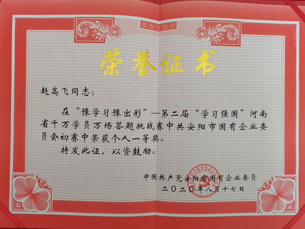 “夢(mèng)想從學(xué)習(xí)開(kāi)始,事業(yè)從實(shí)踐起步”。近年來(lái),洹河保安公司持續(xù)將學(xué)習(xí)強(qiáng)國(guó)平臺(tái)作為黨員干部職工理論知識(shí)學(xué)習(xí)的“加油站”,通過(guò)不斷完善學(xué)習(xí)管理,加強(qiáng)學(xué)習(xí)監(jiān)督,充分激發(fā)調(diào)動(dòng)廣大黨員干部職工學(xué)習(xí)的積極性、主動(dòng)性、自覺(jué)性。隨著學(xué)習(xí)進(jìn)度的不斷推進(jìn),涌現(xiàn)出了一批勤學(xué)習(xí)、愛(ài)學(xué)習(xí)、樂(lè)學(xué)習(xí)的“學(xué)習(xí)達(dá)人”,鼎信黨支部趙高飛同志就是其中的“排頭兵”。 趙高飛,35歲,中共黨員,本科學(xué)歷,現(xiàn)任鼎信子公司副經(jīng)理,自“學(xué)習(xí)強(qiáng)國(guó)”平臺(tái)上線以來(lái),趙高飛學(xué)習(xí)成績(jī)屢創(chuàng)新高,先后榮獲2020年度學(xué)習(xí)強(qiáng)國(guó)挑戰(zhàn)賽安陽(yáng)市賽區(qū)決賽“個(gè)人三等獎(jiǎng)”,2021年度安陽(yáng)市黨員干部在線答題競(jìng)賽“個(gè)人三等獎(jiǎng)”,2022年度學(xué)習(xí)強(qiáng)國(guó)河南學(xué)習(xí)平臺(tái)“喜迎二十大、中原更出彩”答題比賽“周達(dá)人”及“學(xué)習(xí)達(dá)人”,2023年度“強(qiáng)國(guó)有我 學(xué)習(xí)興安”學(xué)習(xí)強(qiáng)國(guó)答題挑戰(zhàn)賽安陽(yáng)市決賽“個(gè)人二等獎(jiǎng)”,2023年度學(xué)習(xí)強(qiáng)國(guó)河南學(xué)習(xí)平臺(tái)“貫徹二十大精神、建設(shè)現(xiàn)代化河南”強(qiáng)國(guó)答題比賽“周達(dá)人”。學(xué)習(xí)從來(lái)都不是一蹴而就的,這些成績(jī)的獲得,是趙高飛日積月累堅(jiān)持學(xué)習(xí)的成果。 對(duì)于平時(shí)怎樣學(xué)習(xí),趙高飛有自己的學(xué)習(xí)心得,他認(rèn)為,學(xué)習(xí)要貴在勤奮、貴在鉆研、貴在有恒,每天早上第一件事,就是打開(kāi)學(xué)習(xí)強(qiáng)國(guó)平臺(tái),翻閱感興趣的時(shí)事新聞和行業(yè)動(dòng)態(tài),完成每天的學(xué)習(xí)任務(wù),從不占用工作時(shí)間學(xué)習(xí),都是在上班之前就完成了。對(duì)于參加比賽如何獲得好的成績(jī),趙高飛有一套自己的學(xué)習(xí)竅門(mén)。一是要堅(jiān)持,每天堅(jiān)持把當(dāng)日學(xué)習(xí)積分做完,總結(jié)學(xué)習(xí)方法和學(xué)習(xí)技巧。二是勤練習(xí),四人賽、雙人對(duì)戰(zhàn)是關(guān)鍵,要勤練習(xí)各個(gè)答題模塊,熟能生巧。三是有訣竅,他整理出一整套學(xué)習(xí)題庫(kù)達(dá)5000多題,并利用碎片時(shí)間翻看熟記于心,他把各種類(lèi)型的題分類(lèi)總結(jié),錯(cuò)題、易錯(cuò)題收藏起來(lái),反復(fù)練習(xí)、各個(gè)擊破,最終,他克服一切困難,集中一切精力用5個(gè)小時(shí)時(shí)間,通關(guān)“強(qiáng)國(guó)總題庫(kù)”共4202題。四是重交流,他加入了“學(xué)習(xí)強(qiáng)國(guó)”全國(guó)學(xué)習(xí)聯(lián)盟、“學(xué)習(xí)強(qiáng)國(guó)”河南學(xué)習(xí)聯(lián)盟等學(xué)習(xí)微信群,和學(xué)習(xí)達(dá)人們一起探討答題經(jīng)驗(yàn)和技巧 趙高飛的堅(jiān)持與好學(xué)不僅體現(xiàn)在學(xué)習(xí)上,在工作中也體現(xiàn)的淋漓盡致。因從事后勤工作,需要財(cái)務(wù)相關(guān)知識(shí),他便利用休息時(shí)間自學(xué)財(cái)務(wù)知識(shí),并于2020年取得初級(jí)會(huì)計(jì)資格證書(shū);因工作中經(jīng)常對(duì)消防安全工作進(jìn)行排查,他為了更好的完成工作任務(wù),開(kāi)始自學(xué)消防知識(shí),于2023年取得中級(jí)職業(yè)資格證書(shū)。因工作中經(jīng)常有對(duì)外采購(gòu)、簽定合同事宜,他報(bào)名了中國(guó)政法大學(xué)網(wǎng)絡(luò)教育學(xué)院的培訓(xùn)班,學(xué)習(xí)專(zhuān)業(yè)法律知識(shí),2023年參加了由司法部組織的國(guó)家統(tǒng)一法律職業(yè)資格考試,已順利通過(guò)客觀題考試,主觀題在積極備考中。因分管技術(shù)工作,他自學(xué)水電、電腦、電器、機(jī)器設(shè)備知識(shí),堅(jiān)持隱患排查,保障41輛考車(chē)、24輛模擬車(chē)、200多處監(jiān)控設(shè)施、300多臺(tái)電腦和打印機(jī)的正常運(yùn)轉(zhuǎn),確保駕駛?cè)丝荚嚨捻樌M(jìn)行。 為了節(jié)約費(fèi)用、降低成本,趙高飛勇于履職擔(dān)當(dāng),不斷自我加壓,向高難度挑戰(zhàn),安陽(yáng)駕駛?cè)丝荚囍行挠蠰ED顯示屏16處,電子門(mén)禁16處,使用年限長(zhǎng)、故障多,專(zhuān)業(yè)人員維修現(xiàn)場(chǎng)報(bào)價(jià)高。為解決故障難題,趙高飛自學(xué)鉆研LED顯示屏和電子門(mén)禁系統(tǒng)知識(shí),充分利用閑置資源、配件對(duì)LED顯示屏和電子門(mén)禁進(jìn)行維修維護(hù)。同時(shí),他自己設(shè)計(jì)了門(mén)禁方案、尋找配件、動(dòng)手組裝,完成了8套指紋門(mén)禁的安裝,并順利的通過(guò)了檢查組的驗(yàn)收,每套花費(fèi)降低至400元,為公司節(jié)約費(fèi)用1萬(wàn)余元。在工作中,趙高飛秉承“能維修絕不換新”的節(jié)約思想,大到大車(chē)考場(chǎng)隧道、雨霧天氣設(shè)備、監(jiān)控設(shè)施,小到門(mén)窗、電風(fēng)扇、鍵盤(pán)、鼠標(biāo)等工作用品,他都維修過(guò),每年為公司節(jié)約費(fèi)用10萬(wàn)余元。 35歲,趙高飛與洹河保安公司
