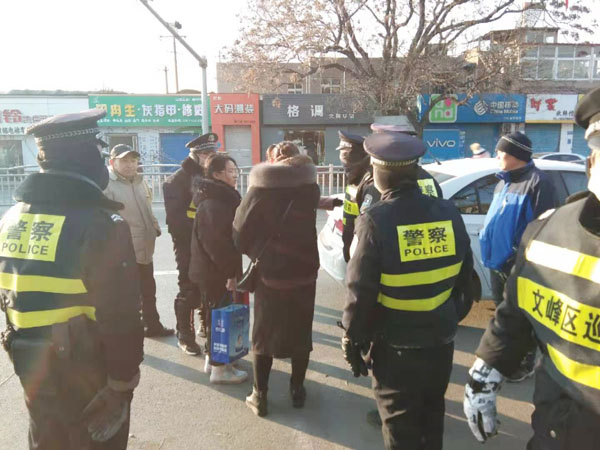 12月19日上午9時許,人防一大隊文峰專職巡防隊隊員在轄區(qū)進行巡邏,途經(jīng)南門時,發(fā)現(xiàn)該路段工商銀行門口有人發(fā)生爭執(zhí),引來了不少圍觀的群眾。為了避免情況惡化,造成交通擁堵,巡防隊員楊科、袁欣等人立即上前了解情況。原來一輛電動車碰到了路邊私家車的后視鏡,私家車車主要求電動車車主賠償而發(fā)生爭吵??吹剿郊臆嚭笠曠R并無大的損壞,巡防隊員一方面疏導行人散開,不要圍觀,影響交通;另一方面好言相勸雙方,相互給個臺階和解此事。